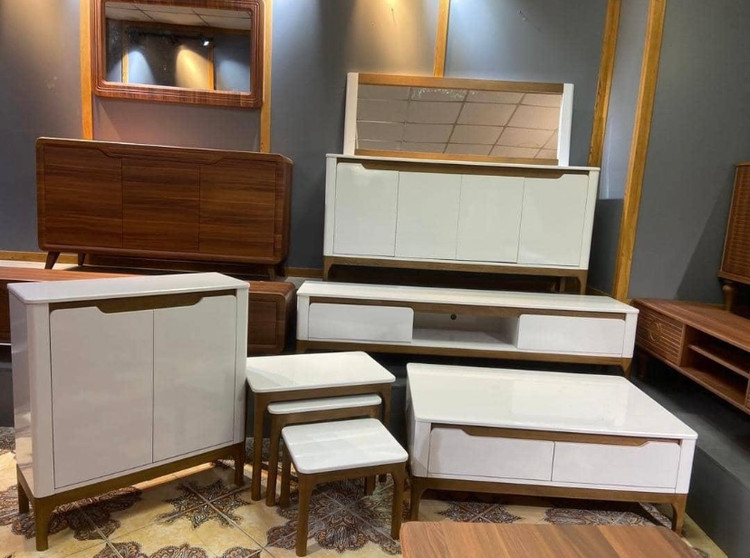 مشخصات جلومبلی: دارای 4 کشو مگنیت پایه میز و پایه عسلی و قسمت از میز تمام چوب راش استفاده شده ریل 3.5 سانتی بسیار نرم